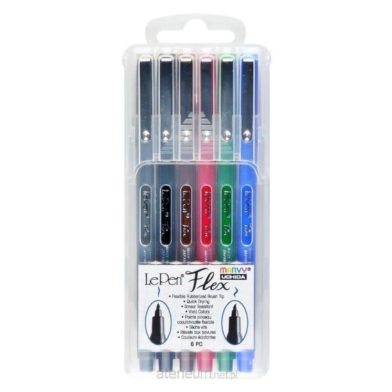 Pisaki Le Pen Flex wypełnione bezkwasowym, nieszkodliwym tuszem na bazie wody. Liczba kolorów - 6 Ilość pisaków w zestawie: 6 szt. Wygodne przechowywanie - wytrzymałe i wygodne plastikowe etui.