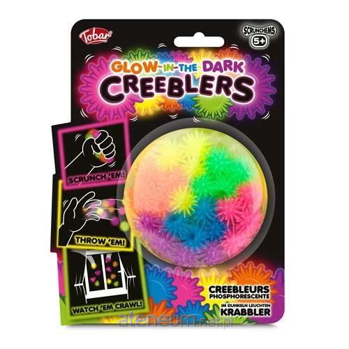 Popularne gwiazdki Creeblers w nowej odsłonie - świecące w ciemności. Opakowanie 24 mini kulek, które schodzą po ścianach i oknach. Rzuć Creeblerem w gładką pionową powierzchnię, a przyklei się do niej, zanim z gracją zejdzie na ziemię. Wzór każdej kuli pokryty jest małymi włoskami, dzięki czemu kulka może powoli staczać się po dowolnej powierzchni, na którą zostanie rzucona. Każde opakowanie zawiera 24 Creeblery w sześciu różnych kolorach.