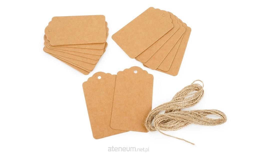 15 zawieszek o wymiarach 8 x 4,5 cm, sznurek do zawieszenia