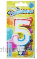 Świeczka urodzinowa 5 jasny różowy 9,5cm