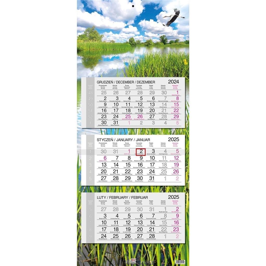* kalendarz ścienny, trójdzielny z główką płaską z zadrukiem na całych pleckach