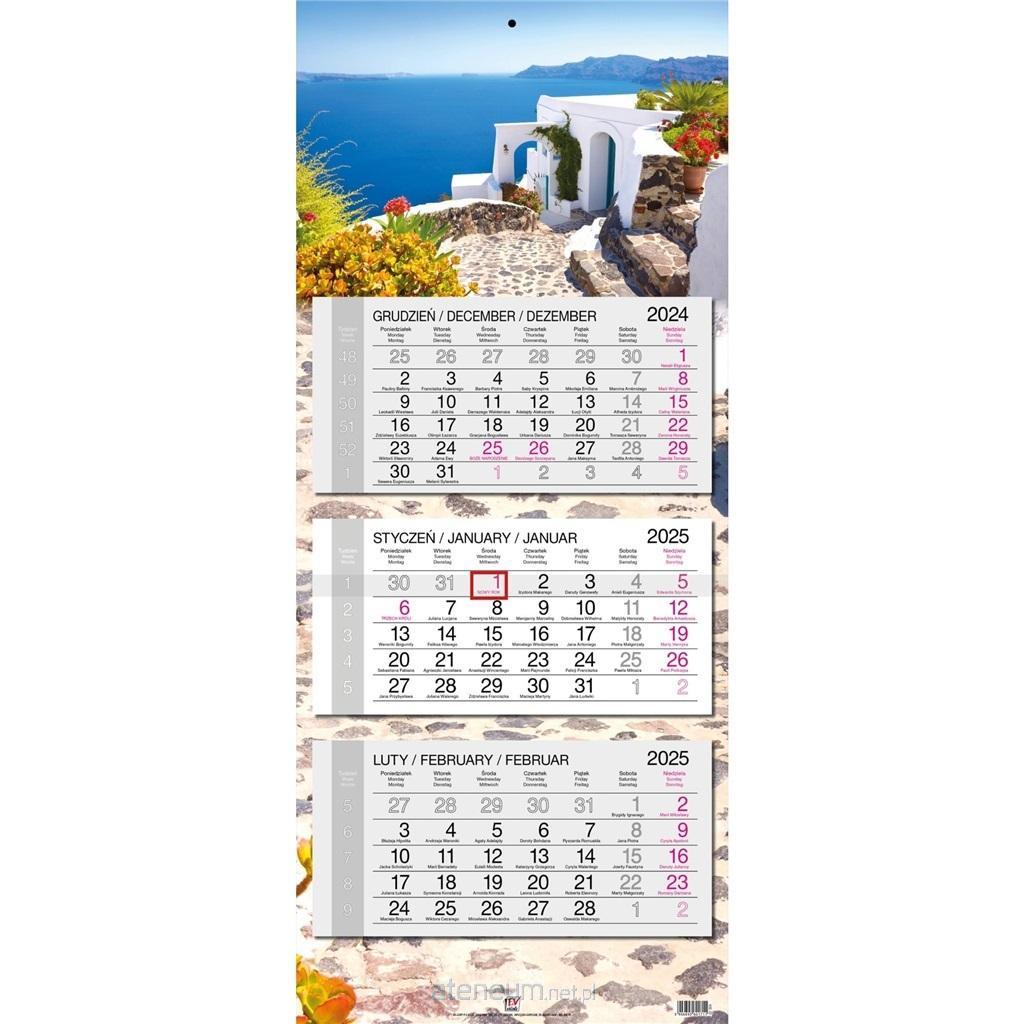 * kalendarz ścienny, trójdzielny z główką płaską z zadrukiem na całych pleckach