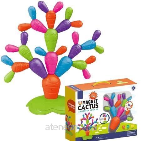 Zestaw składa się z kolorowych klocków, które po ułożeniu tworzą wieżę przypominającą kaktusa.