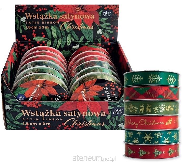 Wstążka satynowa z motywem świątecznym 12mmx22m