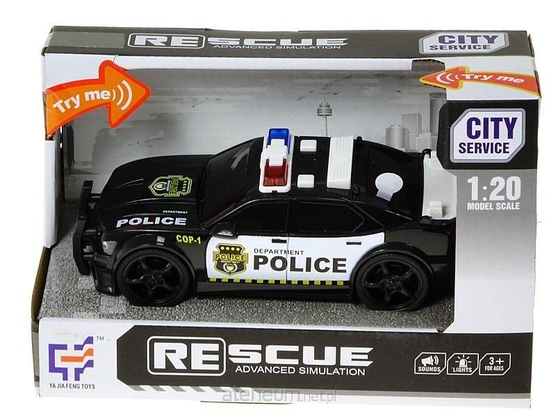 auto policyjne 18,5x7x6cm, światło, dźwięk; 23,5x15,5x10,5cm, W/B