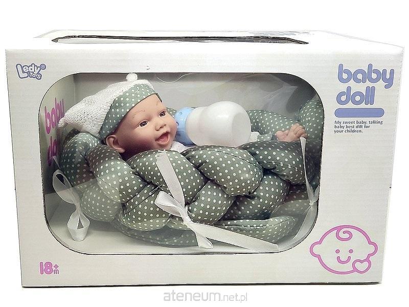 lalka bobas 25cm, z kocykiem i butelką; 28x21x19cm, W/B