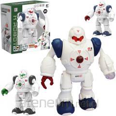 W zestawie: 2 roboty, 2 piloty sterujące, 2 piłki, elementy do budowy boiska wraz z 2 bramkami,