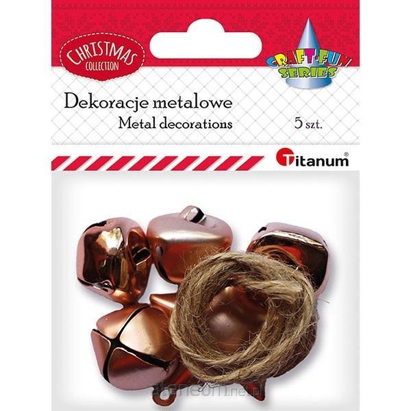 Dzwoneczki metalowe 23x21mm, gwiazdka 43x45mm różowe złoto 5szt. + sznurek jutowy