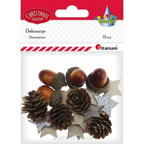 Szyszki 4szt., żołędzie 4szt. mix rozmiarów, gwiazdki drewniane 30x27mm jednostronie brokatowo-srebrne 10szt. 18szt.