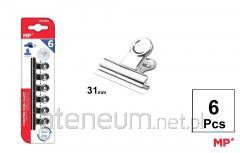 Klipsy biurowe metalowe srebrne 31mm 6szt
