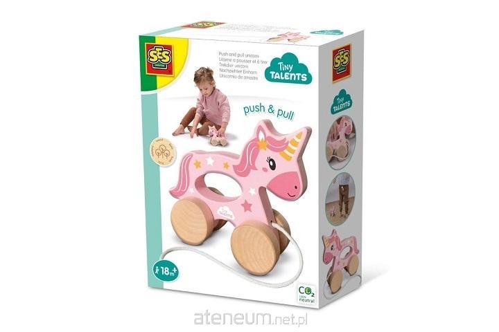 Piękny różowy jednorożec do ciągnięcia, wykonany z drewna i wyposażony w solidne koła do zabawy. Pchnij jednorożca, wykorzystując otwór jako uchwyt lub pociągnij za sznurek, aby jednorożec jechał z tyłu. Nowoczesny i uroczy wzór jednorożca, rozmiar dostosowany do dziecięcych dłoni.