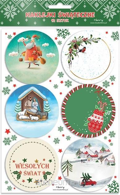 Zestaw naklejek na prezenty Mikołaj na dachu