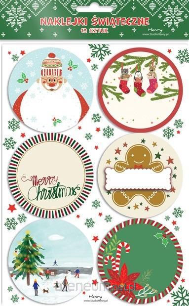 Zestaw naklejek na prezenty Mikołaj na dachu