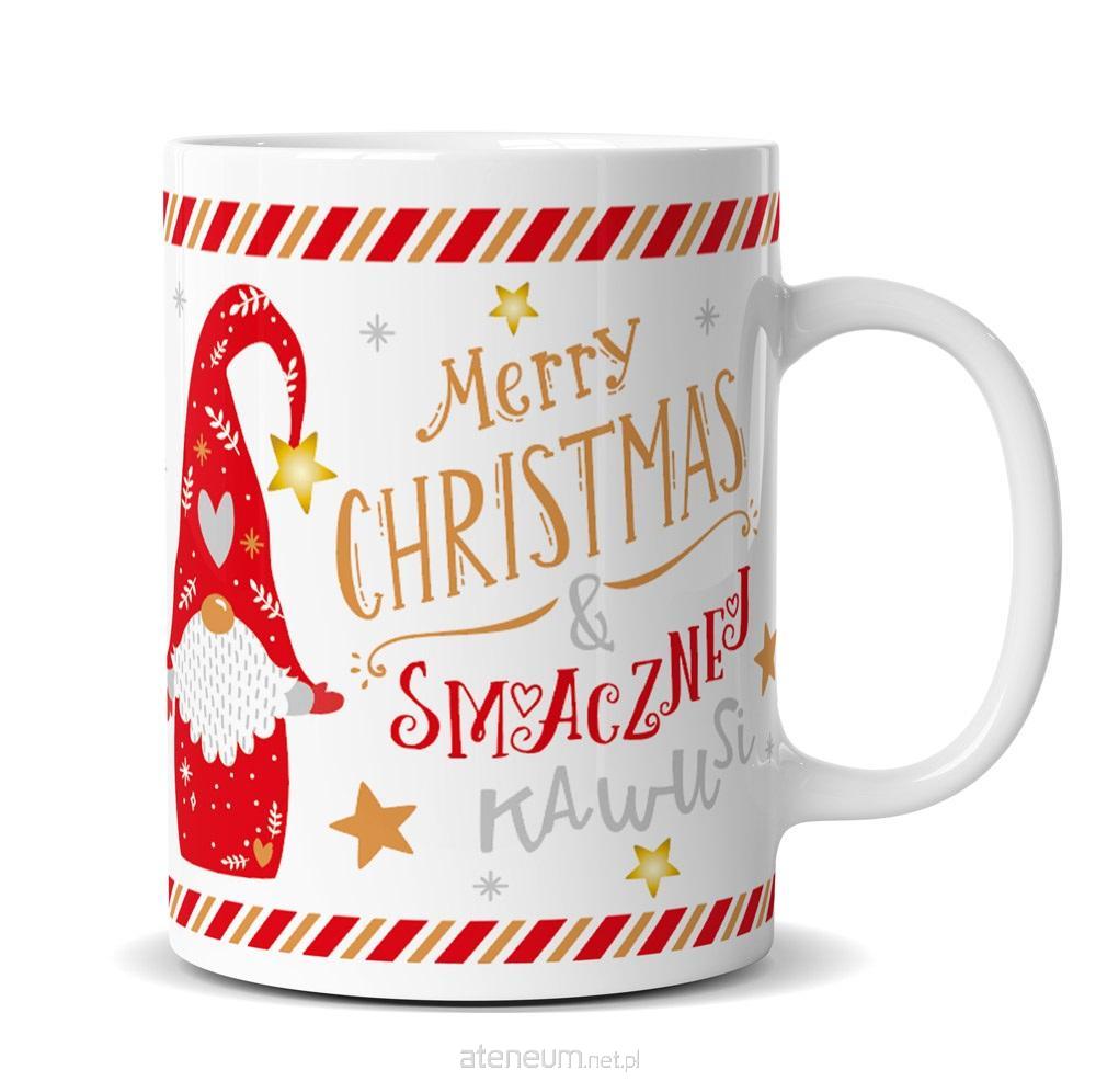Kubek Premium "Merry Christmas, smacznej kawusi" Q 1018 Kubki Premium Kukartka to idealny pomysł na prezent - wzory są oryginalne, zdobione złotem i pakowane w piękne pudełeczko. *Opakowania występują w różnych kolorach: czarny, niebieski, granatowy, różowy, biały i miętowy. KOLORY OPAKOWAŃ SĄ WYBIERANE LOSOWO. Cechy szczególne: Typ produktu: kubek na prezent, Materiał: porcelana, Pojemność: 300ml Opakowanie: ozdobny kartonik, Okazja: BN