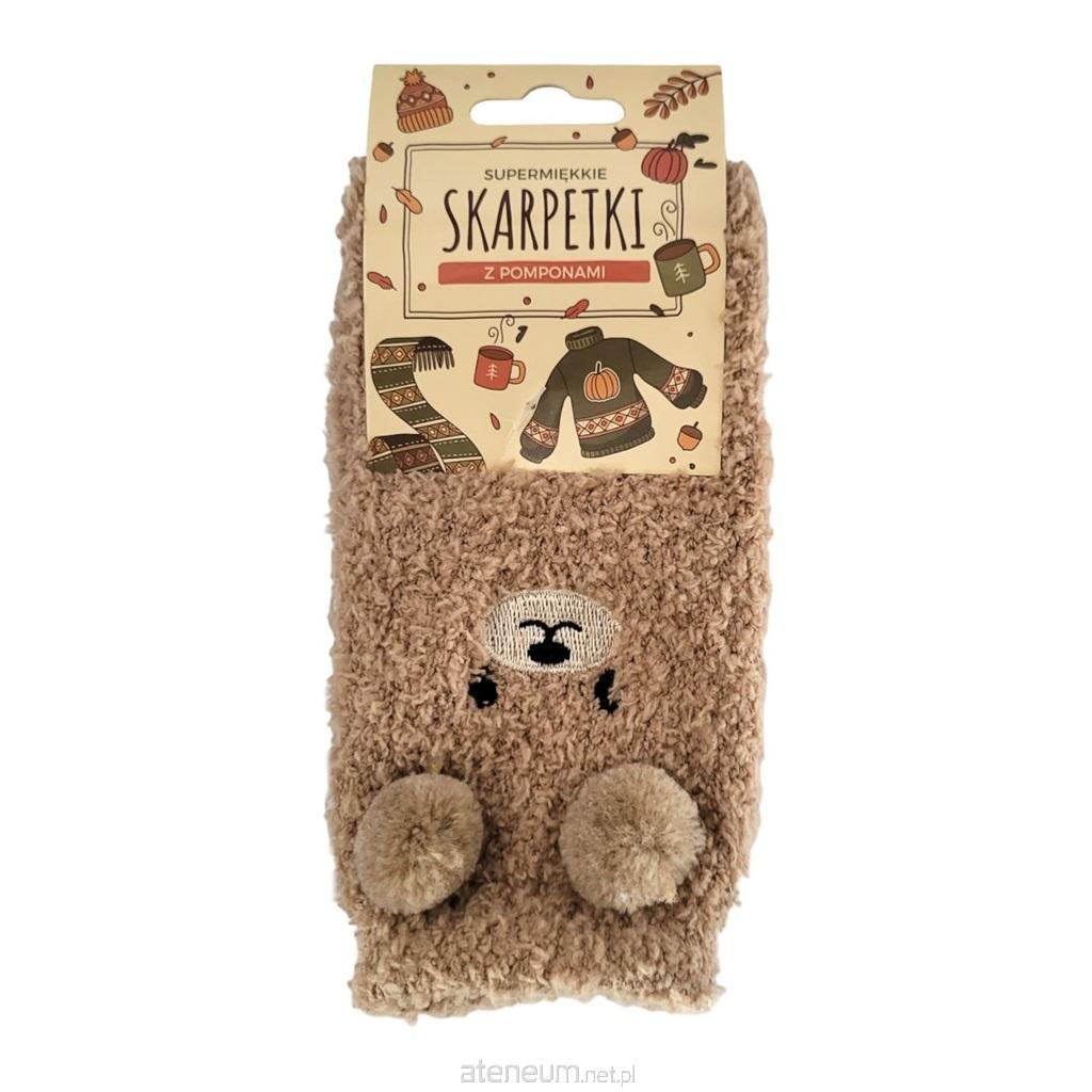 Skarpety z pomponami. Beżowe. Materiał: tworzywo sztuczne.