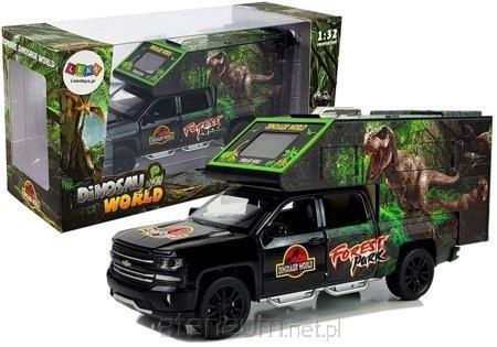 Camper z Dinozaurami Czarny Jeżeli Twoje dziecko jest fanem prehistorycznych dinozaurów, to będzie idealne autko dla niego. Camper jest cały oklejony podobiznami prehistorycznych zwierząt, w zależności od wyobraźni twojego dziecka może służyć jako auto do udania się w długą podróż lub może własne centrum dowodzenia nad obserwacją prehistorycznych zwierząt niczym z PARKU JURAJSKIEGO. Decyzja należy wyłącznie do małego odkrywcy. Będzie rewelacyjnym prezentem dla dziecka, które uwielbia doświadczenia i odkrywanie nowych zakątków świata. W środku wyposażona jest jak w normalnym domu, dwupiętrowym. Na pierwszym piętrze znajdują się łóżko i kuchni. Na drugim piętrze auta można według wyobraźni małego podróżnika stworzyć centrum dowodzenia lub garderobę. Auto posiada otwierane drzwi, po pociągnięciu do tyłu i dociśnięciu auto mknie na przód. Wykonane w skali 1:32. Dodatkowo wydaje dźwięki szybkiej jazdy, przednie reflektory świeca jasnym światłem oświetlając drogę. Uruchamiają się poprzez dociśnięcie autka do podłoża. Wymiary autka: 21 cm x 6 cm x 9 cm Wymiary opakowania: 26 cm x 10 cm x 13 cm Zabawka przeznaczona jest dla dzieci powyżej 3. roku życia. Ciężarówka posiada certyfikat CE i jest zgodna z normą EN 71. Posiada metalowe elementy bez ostrych zakończeń, dlatego jest całkowicie bezpieczna. Zapakowana jest w kartonik z przezroczystą witrynką, dzięki czemu nadaje się idealnie na prezent. Zasilana jest 3 bateriami AA 1,5 V.