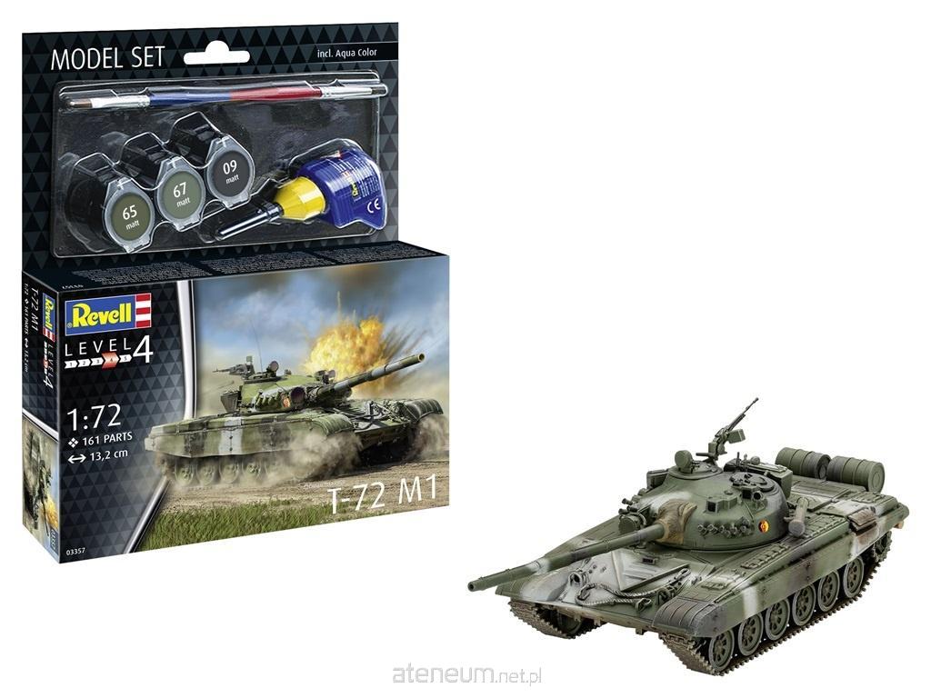 Model Revell T-72 M1 (numer katalogowy 63357) w skali 1:72 to szczegółowa replika jednego z najbardziej rozpoznawalnych czołgów z okresu zimnej wojny, używanego przez wiele armii na całym świecie. Zestaw Model Set zawiera nie tylko części modelu, ale również akcesoria podstawowe, takie jak farby, klej i pędzelek, co sprawia, że jest idealnym wyborem dla początkujących modelarzy i kolekcjonerów zainteresowanych pojazdami wojskowymi.