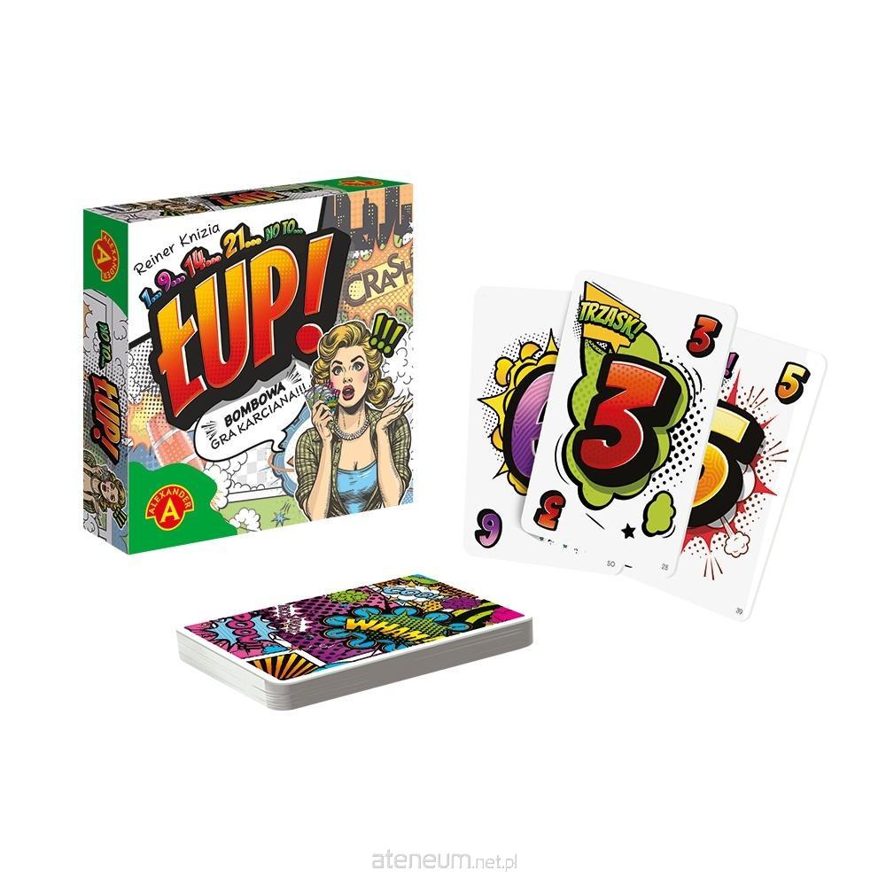 ŁUP! to szybka gra karciana, w której staracie się zbliżyć do łącznej wartości 21 punktów, ale jej nie przekroczyć. Każda karta to cios o różnej sile zadany przeciwnikom od lekkiego Puk! czy Pac! za 1 i 2 punkty, aż do totalnego łomotu za 7. Po kolei dorzucacie karty do puli leżącej na stole. Puk! Pac! Szast! Prast! i przed twoim ruchem na stole jest 14 punktów. Idealnie, bo na ręku wciąż masz Łomot!. No to łup! Dokładasz do 21 oczek i zgarniasz wszystko. To twój łup w tej rundzie.