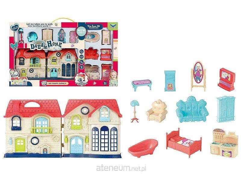 domek dla lalek, z figurkami i meblami; 61x36x6,5cm, W/B