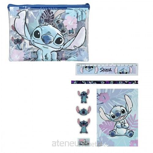 Zestaw Przyborów Szkolnych 8 el. Stitch Dzięki torbie z PVC wypełnionej wysokiej jakości przyborami do pisania w stylu Stitch, będziesz zawsze dobrze wyposażony, niezależnie od tego, gdzie się znajdujesz. Zszywany notatnik w miękkiej oprawie w poręcznym formacie A6 oferuje wystarczająco dużo miejsca na Twoje przemyślenia, pomysły i notatki. Ołówek z efektem folii wygodnie leży w dłoni, zapewniając wygodne pisanie, a temperówka i linijka są praktycznym uzupełnieniem całego kompletu. Trzy małe gumki są praktycznymi pomocnikami umożliwiającymi łatwe korygowanie błędów. Dzięki temu zestawowi do pisania będziesz nie tylko zorganizowany, ale także stylowy. Zestaw przyborów szkolnych 8 el. Stitch. Zawiera: 1 Przeźroczystą saszetkę, piórnik z PCV zamykaną na suwak. 1 Notatnik w linie format A6 - str. 1 Ołówek 1 Temperówkę 1 Linijkę 3 Gumki Wymiary produktu: 20,5 cm x 17 cm x 2 cm. Kategoria wiekowa: 3+.