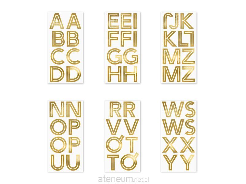 Naklejki Alfabet w kolorze złotym, zestaw zawiera 6 blistrów z 52 literami (po 2 litery z każdej). Wysokość liter ok. 4 cm.(1 op. / 6 szt.)