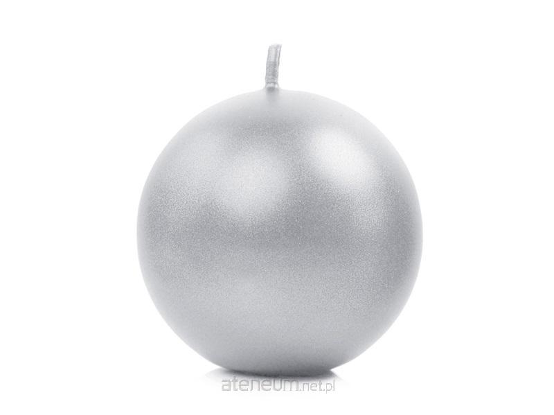 Świeca metalizowana Kula w kolorze srebrnym, średnica 8 centymetrów. Czas palenia 1 sztuki około 20 godzin.(1 op. / 6 szt.)
