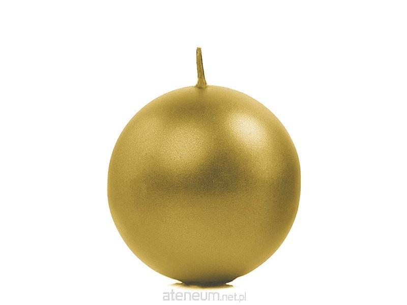 Świeca metalizowana Kula w kolorze złotym, średnica 8 centymetrów. Czas palenia 1 sztuki około 20 godzin.(1 op. / 6 szt.)
