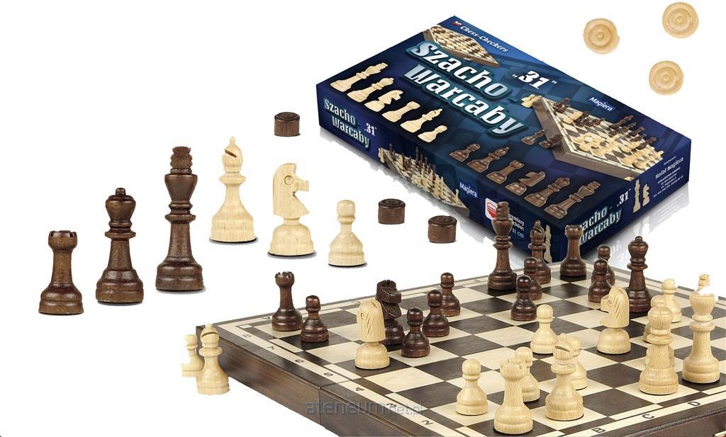 Szachy i Warcaby "31" to kombinacja dwóch gier, które zapewniają świetną zabawę na długie wieczory. Bardzo dobre dla dzieci do nauki gry w szachy i warcaby. Szachownica wyposażona jest we flokowaną wkładkę z przegródkami służącą do przechowywania figur szachowych i warcabowych, wykonana z drewna bukowego i brzozowego. Figury szachowe są wykonane z wysoko gatunkowego drewna grabowego oraz podklejone czarnym, flokowanym materiałem . Wysokość króla to 5,8 cm. Całość została wykonana z najwyższą dbałością o szczegóły oraz zaimpregnowana lakierem zabezpieczając przed zabrudzeniami i wilgocią.