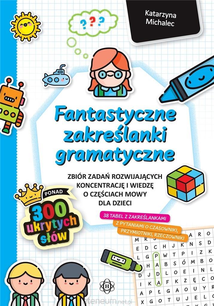 Zakreślanki to propozycja atrakcyjnej dla dziecka formy ćwiczeń (zabawa w wynajdowanie i kolorowanie słów), dzięki której przyswajanie wiedzy o częściach mowy staje się proste i bardzo przyjemne Zabawa z książeczką pomoże nie tylko w nauce rozróżniania czasownika, przymiotnika i rzeczownika, ale również rozwinie spostrzegawczość oraz koncentrację, a czytanie kolejnych pytań, na które należy znaleźć odpowiedź w diagramie, pozwala utrwalić wiedzę o częściach mowy i sprawia, że gramatyka nie musi się już kojarzyć z mozolnym powtarzaniem reguł!