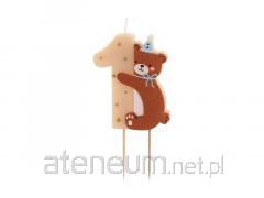 Świeczka urodzinowa 1 z misiem mix 7cm