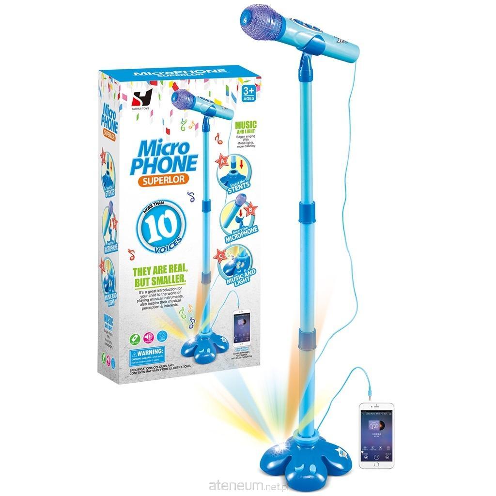 Mikrofon na statywie ze światłem i dźwiękiem. Możliwość podpięcia zewnetrznego źródła dźwięku.