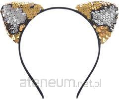 Opaska na głowę z kocimi uszami. Uszy pokryte są dekoracyjnymi cekinami w dwóch kolorach - srebrnym i złotym. Po obróceniu cekinów można wybrać kolor. Oryginalna ozdoba na bal karnawałowy, wieczór panieński, zabawę tematyczną.