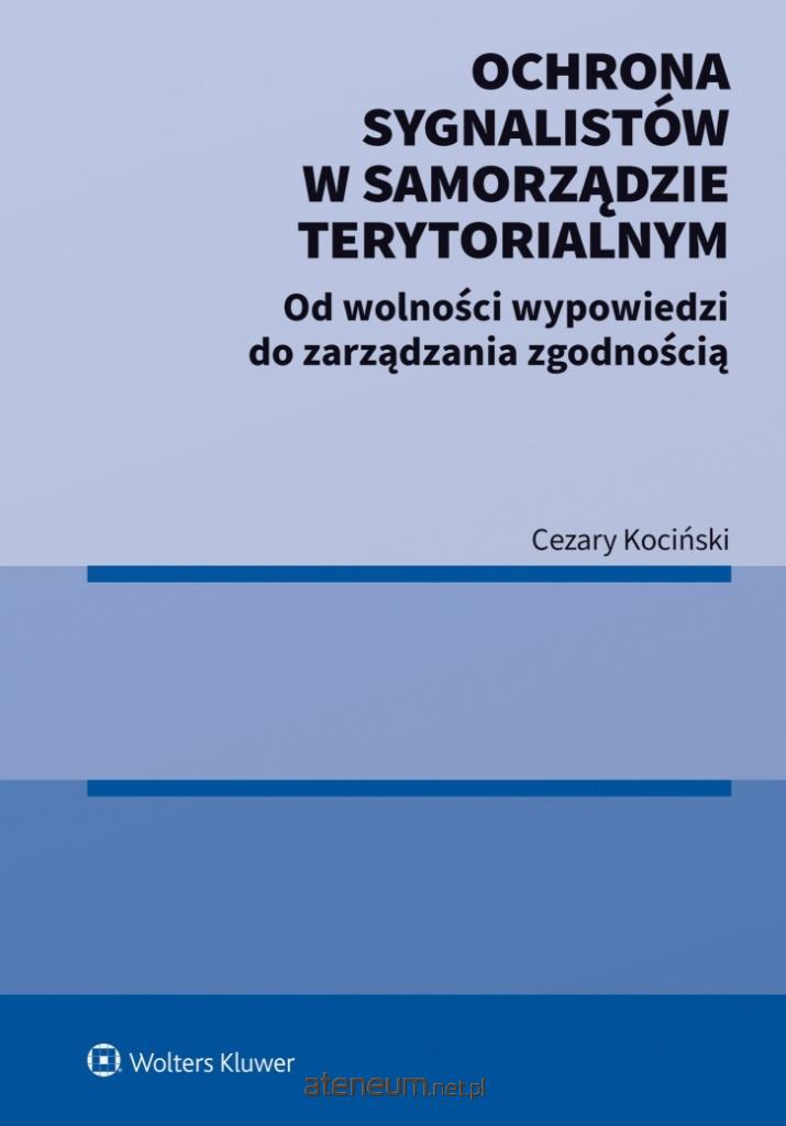 Książka kompleksowo przedstawia rozwiązania dotyczące zarządzania zgodnością, polityki etyki i ochrony sygnalistów w odniesieniu do samorządu terytorialnego z uwzględnieniem aspektów prawnych, organizacyjnych oraz społecznych. Autor omawia aktualne regulacje prawne, uwarunkowania wdrożeniowe oraz zagrożenia i pułapki wynikające z rozumienia przepisów prawnych. Proponuje ponadto działania oraz wzory aktów wewnętrznych i dokumentów, które wspomogą jednostki samorządu terytorialnego i ich komórki organizacyjne w skuteczniejszym wdrażaniu systemu ochrony sygnalistów. Opracowanie zostało wzbogacone o: analizę ochrony sygnalistów z punktu widzenia wolności wypowiedzi, kwestie związane z istotą i bezpośrednim stosowaniem dyrektywy w sprawie ochrony osób zgłaszających naruszenia prawa Unii, wnioski de lege ferenda - propozycje wprowadzenia zmian w obowiązującym prawie oraz uzasadnienie potrzeby ich dokonania, wykaz dokumentacji całościowego podejścia do ochrony sygnalistów na przykładzie administracji gminnej. Autor chce nie tylko pogłębić świadomość znaczenia ochrony sygnalistów w administracji lokalnej, lecz także zainspirować do działań, które wzmocnią transparentność, uczciwość i etyczność funkcjonowania jednostek samorządu terytorialnego. Wyjaśnia, że podstawą tych działań jest wprowadzenie lokalnej polityki antykorupcyjnej i działań etycznych w administracji samorządowej oraz wdrożenie rozwiązań organizacyjnych zapewniających zarządzanie zgodne z prawem, regulaminami wewnętrznymi, dobrymi praktykami, kodeksami etycznymi oraz oczekiwaniami społecznymi (system compliance). Publikacja przeznaczona jest dla pracowników samorządowych, urzędników, radnych oraz przedstawicieli organizacji pozarządowych. Będzie pomocna dla pracowników działów compliance, obsługi prawnej i wszystkich zainteresowanych kwestią ochrony sygnalistów.