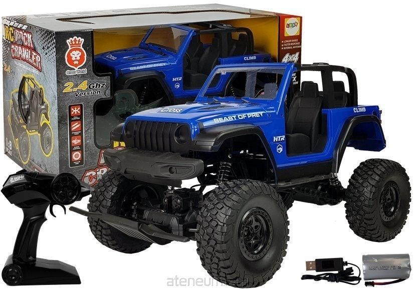 Auto Terenowe Jeep Zdalnie Sterowane 2.4G Niebieski Auto terenowe, które pokona każdą przeszkodę. Doskonale radzi sobie zarówno na asfalcie, jak i kostce brukowej. Miękkie, gumowe koła pojazdu gwarantują dużą przyczepność auta do różnego rodzaju podłoża, a duże amortyzatory pozwalają przedostać się przez trudne przeszkody. Przedstawiony model wykonany jest w skali 1:8, dzięki czemu wygląda niesamowicie realnie. Zdalnie sterowany pojazd wpłynie na prawidłowe rozwijanie w dziecku takich umiejętności jak prowadzenie zabawkowego samochodu, a także wzmocnienie koncentracji i rozwinięcie zdolności manualnych. Duże koła, amortyzatory oraz terenowa konstrukcja to tylko nieliczne z zalet tego samochodu. W zestawie znajduję się wygodny i precyzyjny kontroler. Jeśli kiedykolwiek sterowałeś profesjonalnym autem, wiesz, że tego typu pilot pozwala czerpać maksymalną przyjemność z jazdy. Kontroler, dołączony do zestawu, pracuje na częstotliwości 2.4 GHz, dzięki czemu można ścigać się w większym gronie bez obaw o wzajemne zakłócenia. Specyfikacja: - Kolor: niebieski - Materiały: metal, elementy elektroniczne, guma, tworzywo sztuczne - Skala: 1:8 - Napęd: 4x4 - Bateria litowa: 7.4 V 1200 mAh - Częstotliwość: 2.4G - Czas ładowania: 2-3 godzin - Zasilanie kontrolera do zdalnego sterowania: 3 baterie AA 1.5V (brak w zestawie) - Wiek dziecka: powyżej 6. roku życia - Rozstaw kół: 24 cm - Średnica koła: 13 cm Elementy zestawu: - auto terenowe zdalnie sterowane - pilot do zdalnego sterowania - akumulator 7.4V - ładowarka USB Wymiary wybranych elementów zestawu: - auto terenowe zdalnie sterowane: 49 cm x 29 cm x 27.5 cm - pilot do zdalnego sterowania: 19 cm x 16 cm x 7 cm Wymiary pudełka: 60 cm x 33 cm x 33 cm Zabawka przeznaczona jest dla dzieci powyżej 6. roku życia. Zestaw posiada certyfikat CE i jest zgodny z normą EN 71. Zapakowany jest w kartonik z przezroczystą witrynką, dzięki czemu nadaje się idealnie na prezent.