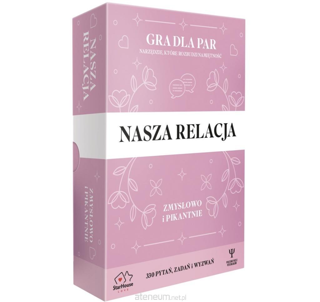 Czy kiedykolwiek zastanawialiście się, jak skutecznie wzmocnić więź w swoim związku? Gra NASZA RELACJA: INSPIRUJĄCO I ANGAŻUJĄCO to idealne rozwiązanie dla par, które pragną odkrywać wspólne marzenia, planować przyszłość i spędzać czas w pełen zaangażowania sposób. Codzienna rutyna może skutecznie zablokować kreatywność i energię w relacji, dlatego warto sięgnąć po narzędzia, które pomogą wprowadzić powiew świeżości. Ta gra dostarcza 330 pytań, zadań i ćwiczeń opracowanych przez doświadczonych psychologów, co czyni ją doskonałym wyborem dla każdej pary. Nie ma znaczenia, czy jesteście razem kilka miesięcy, czy wiele lat gra pozwoli Wam lepiej się zrozumieć, zbliżyć i dodać nową jakość Waszemu związkowi.