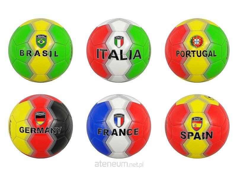 Piłka nożna LASER, błyszcząca, barwy narodowe, 5 wzorów : Italia, Portugal, France, Germany, Brasil