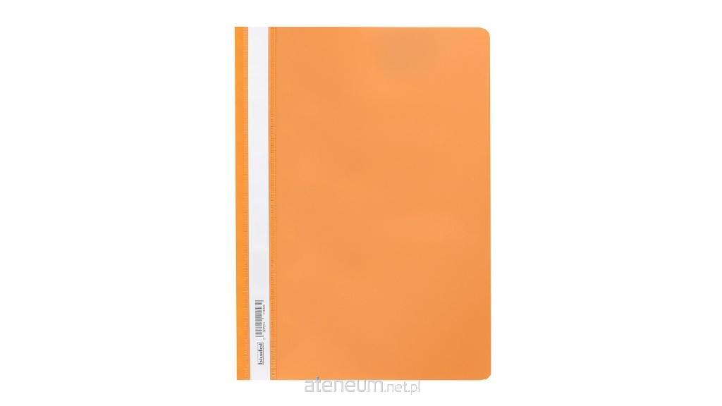 Skoroszyt wykonany z polipropylenu, miękki, przód przezroczysty, tył kolorowy. Wewnątrz klasyczny mechanizm z wąsem i listwą skutecznie zabezpieczający wpiętą zawartość; wąs o długości 14,5 cm. Na bocznej krawędzi wymienny, papierowy pasek do opisu zawartości z kodem kreskowym na szt.. Dwa wycięcia ułatwiające wysuwanie paska. Zaokrąglone rogi obu okładek.