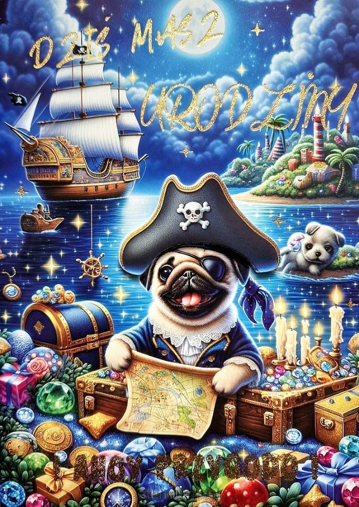 Karnet 3K to bogato zdobiony karnet z elementem naklejanym oraz złoceniem. Karnet to doskonały dodatek do prezentu. Karnet zawiera również zabawne życzenia.