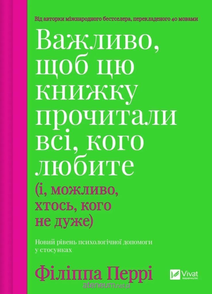 Relationships with family members, partners, friends, coworkers, and most importantly, self-love, determine your quality of life and how easily you overcome adversity. Dr. Perry's case studies are about you. Some people stayed too long on maternity leave and closed themselves off from the rest of the world. Some feel overwhelmed and/or incompetent at work. Someone lost touch with their closest friend. Someone has been abandoned by a partner with an avoidant type of attachment (and yes, we are talking about a same-sex partnership). Someone is looking for and not finding love on the Internet. Someone's children have grown up - and then what? Someone grew up on their own and started to quarrel with siblings like an adult. Some people suffer from their own anger, others from the toxic behavior of their mother-in-law, or even find themselves in a toxic environment. Some people can't get over the death of their relatives, and some feel too old to live in the digital age. Some are in the throes of a 40-year crisis. Some feel sexually dissatisfied. And someone is fixated on their own body, which they are unable to love. It is very important that everyone you love learns about Philippa Perry's algorithms for forming relationships and new habits and effective strategies for resolving disputes, overcoming stress and anxiety. Start with yourself.