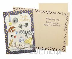 Karnet okolicznościowy w formacie b6 w zestawie z kopertą. Złocony i tłoczony.