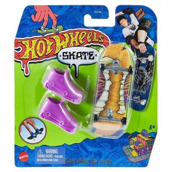 Hot Wheels® i legenda skateboardingu, Tony Hawk, połączyli siły, aby stworzyć epicką kolekcję deskorolek do jazdy palcami doskonałą do ćwiczenia nowych sztuczek i niesamowitych tricków. W każdym zestawie jest deskorolka Hot Wheels® do jazdy palcami oraz para stylowych zdejmowanych butów deskorolkowych, pomagających utrzymać palce na miejscu podczas rozgrzewających do czerwoności popisów. Nowicjusze mogą nabrać pewności siebie oraz lepiej wyczuć deskę i ruchy, a potem spróbować trudniejszych manewrów już bez butów na palce. Każda deska ma niepowtarzalny wzór, dzięki czemu fani będą chcieli zebrać je wszystkie. Sprzedawane oddzielnie w zależności od dostępności. Kolory i elementy dekoracyjne mogą się różnić.