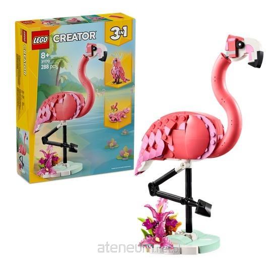 Zaskocz ośmiolatków i starsze dzieci tym fajnym zestawem LEGO® Creator 3 w 1 Dzikie zwierzęta: różowy flaming (31170). Figurka flaminga ma ruchomą głowę i znajduje się na małej podstawce pokrytej roślinami, dzięki czemu zapewnia wiele godzin twórczej zabawy lub mnóstwo możliwości ustawiania.
