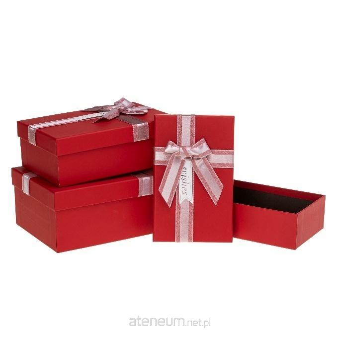 Pudełko prezentowe z kokardą 3szt czerwony ROZETTE