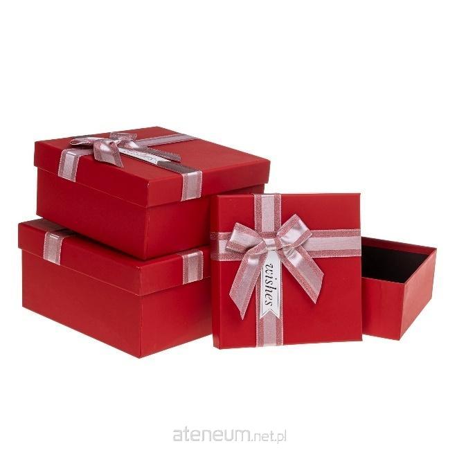 Pudełko kwadrat z kokardą 3szt czerwony ROZETTE