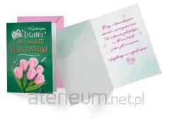 Karnet okolicznościowy z kopertą i życzeniami w środku.