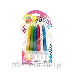 Świeczki urodzinowe kolorowe z brokatem 8cm 12szt