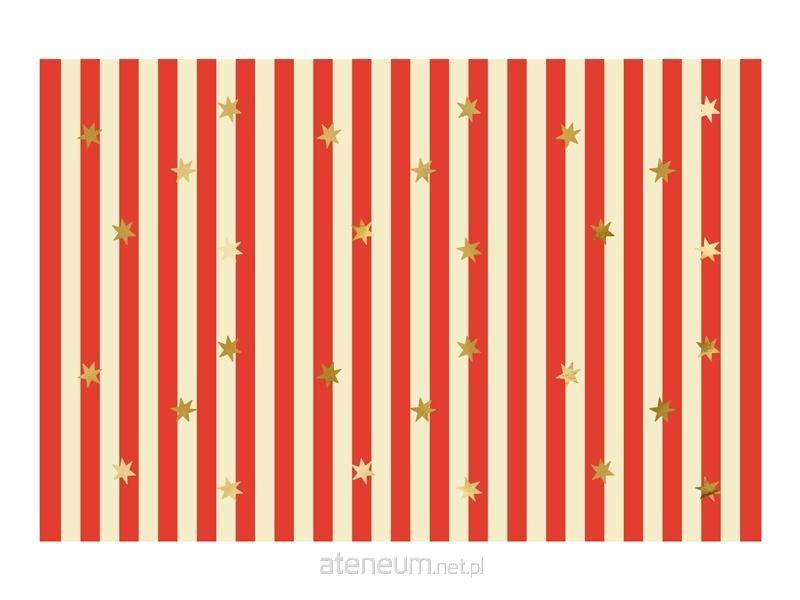 Obrus papierowy z nadrukiem w czerwone pasy i złote gwiazdki, mix, rozmiar 180 x 120 cm