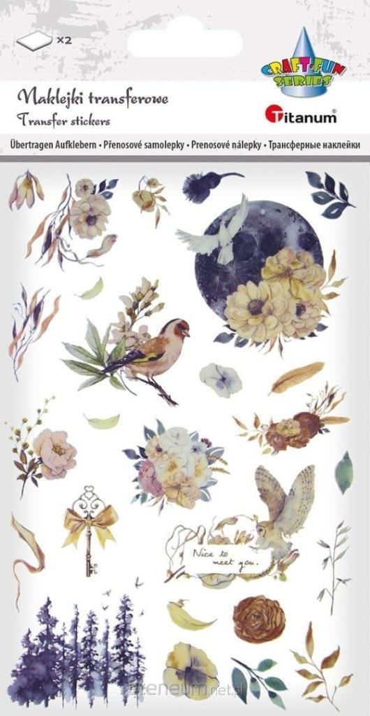 Naklejki transferowe księżyc, las, ptak, koło zębate, bukiety 2 plansze