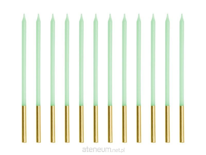 Świeczki urodzinowe gładkie w kolorze jasnozielonym, wysokość ok. 14 cm. Zestaw zawiera 12 świeczek.(1 op. / 12 szt.)
