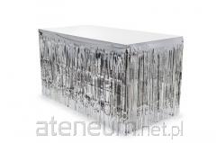 Skirting foliowy z frędzlami srebrny 300x80cm